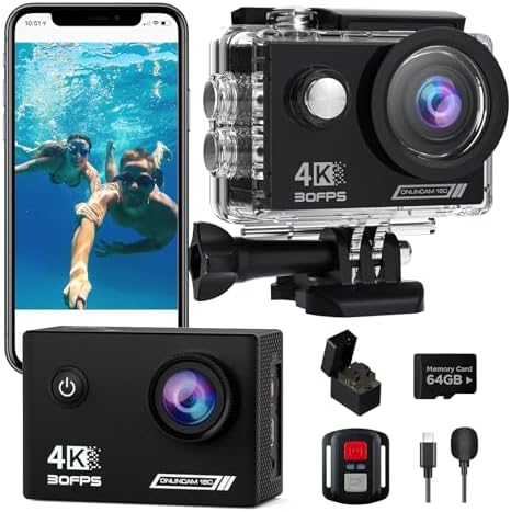 Action Camera 4K30fps with 64G SD Card,HD Waterproof Camera 131ft Underwater Cameras 20MP Pre-Recording WiFi Camera 170° Remote Control Sports Cameras with 2 Batteries Helmet Mount Accessories Kits